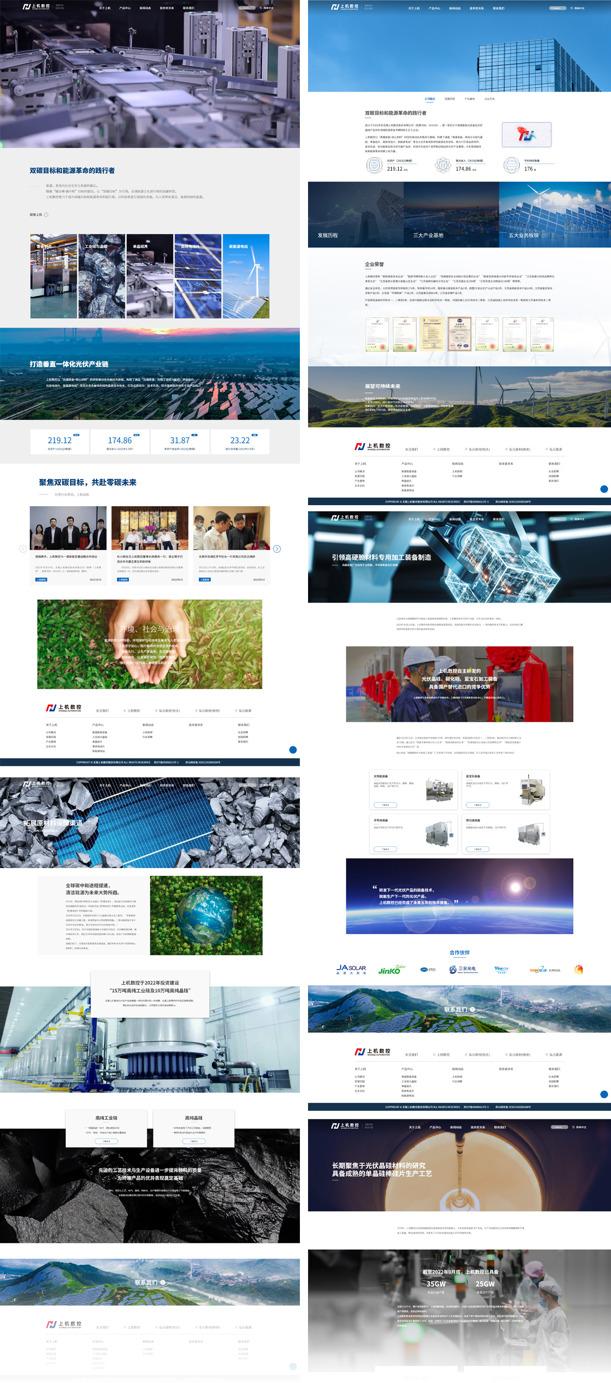 成立于2002年的弘元綠色能源股份有限公司 (原名“無(wú)錫上機(jī)數(shù)控股份有限公司”,股票代碼603185),是一家定位于高端智能化裝備及光伏晶硅產(chǎn)品供應(yīng)領(lǐng)域的國(guó)家級(jí)專精特新小巨人企業(yè)。上機(jī)數(shù)控以“高端裝備+核心材料”的雙輪驅(qū)動(dòng)業(yè)務(wù)格局為基礎(chǔ),構(gòu)建了涵蓋“高端裝備、高純工業(yè)硅與晶硅、單晶硅片、高效電池片、新能源電站”等五大業(yè)務(wù)板塊的綠色能源業(yè)務(wù)體系,致力于打造品質(zhì)優(yōu)異、技術(shù)先進(jìn)、綜合能耗低的光伏豐富產(chǎn)品線,并逐步形成多個(gè)發(fā)揮聯(lián)動(dòng)效應(yīng)的光伏產(chǎn)業(yè)基地,為實(shí)現(xiàn)雙碳目標(biāo)和能源革命貢獻(xiàn)上機(jī)力量。感謝上機(jī)數(shù)控的信任和選擇,無(wú)錫獵豹配合完成了官網(wǎng)的設(shè)計(jì),前后端的開發(fā),并與客戶共同進(jìn)步,收獲成長(zhǎng)。